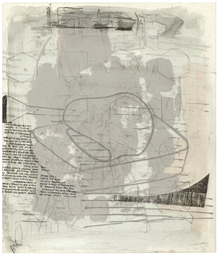 pencil on layered and collaged mylar 12" x 9"